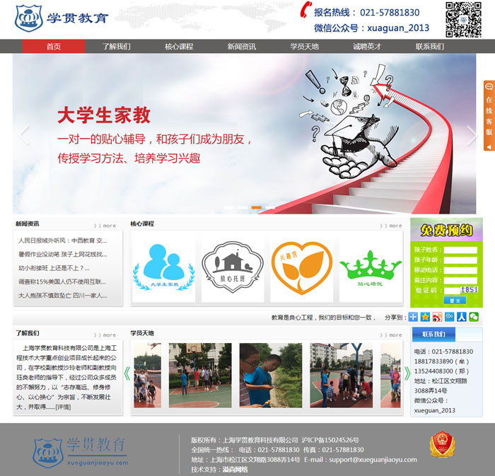 上海學(xué)貫教育科技有限公司是上海工程技術(shù)大學(xué)重點(diǎn)創(chuàng)業(yè)項(xiàng)目成長(zhǎng)起來的公司,在學(xué)校副教授沙玲老師和副教授向玨良老師的指導(dǎo)下,經(jīng)過公司眾多成員的不懈努力,以“志存高遠(yuǎn)、修身修心、以心換心”為宗旨,不斷發(fā)展壯大,并取得了眾多老師、家長(zhǎng)、學(xué)生的支持和信任。