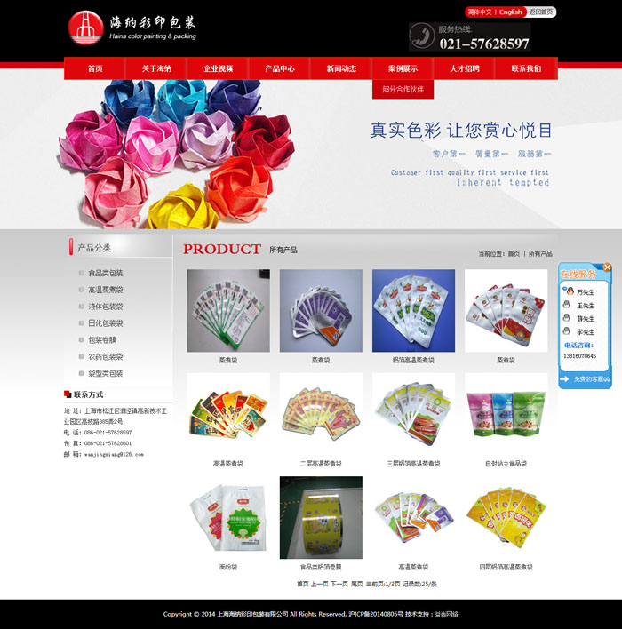 上海海納彩印包裝有限公司,是一家專業的軟包裝生產企業。位于上海市松江區泗涇鎮,擁有近5000㎡的10萬級凈化廠房和10色印幅1050mm和8色印幅1250mm的電腦程控高速凹版印刷機及配套的檢品、復合、分切、制袋等設備。自1997年在上海營業依始,就始終致力于軟包裝產品的技術性能及品質提升,功能性包裝一直是公司的研發重點。