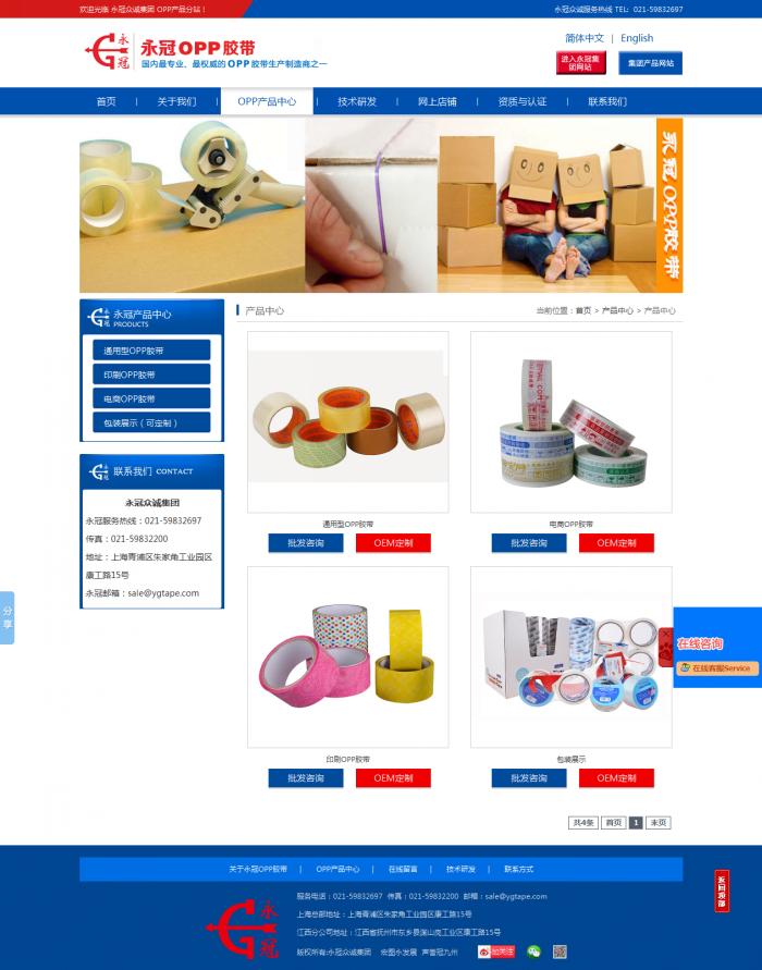 永冠集團自成立以來一直涉足OPP市場,透明黃、透明白、棕色、印字、超透等各類市場需求的OPP膠帶我司客戶源穩定、市場開拓平穩。近年來,集團技術部通過膠水改良、涂布工藝的深度優化以及對原膜的后道技術處理等方法,永冠品牌OPP已在國內市場奠定了相當的市場基礎。截止2015年底,我司年OPP銷售額一直保持30%的銷量遞增!