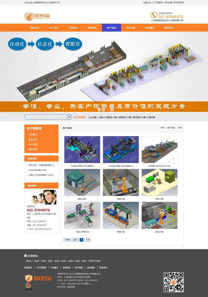 上海思客琦公司秉持以“為用戶提供最合理的自動化生產設備”為理念,從自動化工作站到智能化生產線,以“智能、高效、便捷、低成本”為目標。已為汽車行業、電梯、機車鈑金件、工程機械、金屬冷加工、澆鑄、3C及五金等行業提供了包括沖壓、弧焊、點焊、涂膠、打磨、拋光、折彎、激光切割、物流搬運、裝配定位等各專業領域的應用服務。