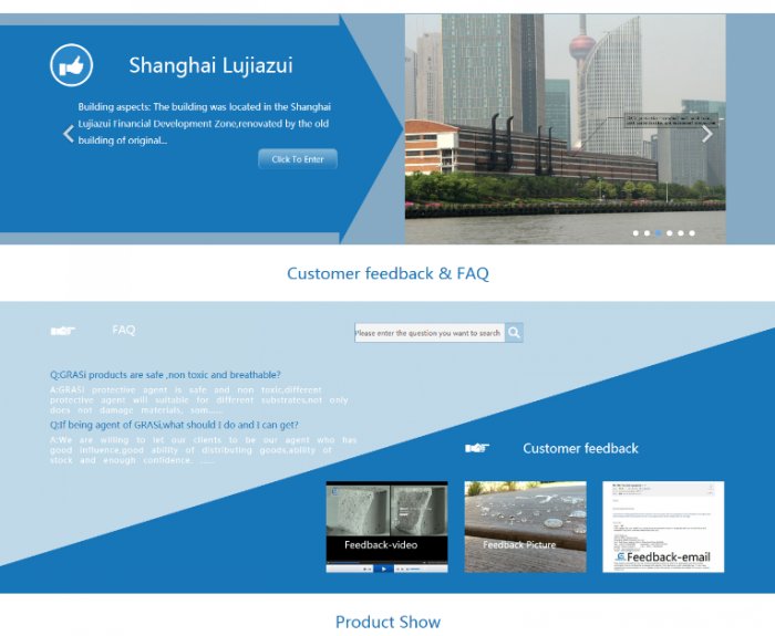 In 2002, GRASi industry co.,ltd was established in shanghai . Using high-tech nano technology to develop GRASi series various types of functional waterproof,anti-corrosion,stain proof nano protective agent in cement, stone, wood, metal, fabric, leather and other professional fields. GRASi aims to be the worlds best nano waterproof protective material professional factory .Through the unremitting efforts, in nano waterproof agent industry, GRASi won wide popularity and reputation, GRASi products used in many world influential architecture ,like the Coca Cola factory...