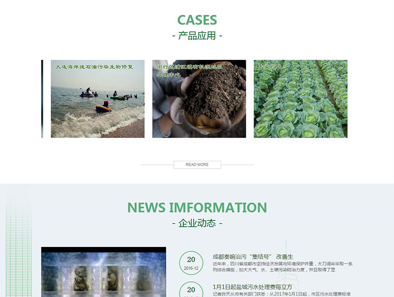 網站特點:首頁采用標準集團企業網站排版方式,內容豐富,包含有簡介版塊,企業優勢版塊,企業產品相關版塊,案例版塊以及新聞動態版塊。全站簡潔化設計,產品與優勢版塊著重突出,顯示產品多樣化。凸顯企業實力以及企業服務項目。用最真實的產品圖片讓客戶更簡潔明了的清楚我們可以提供的產品以及服務。