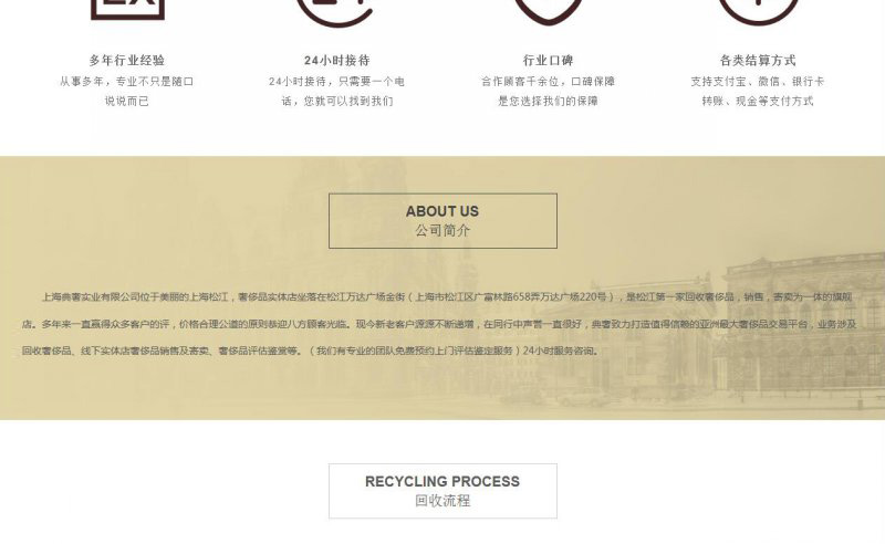 公司介紹:上海典奢實業有限公司位于美麗的上海松江,奢侈品實體店坐落在松江萬達廣場金街(上海市松江區廣富林路658弄萬達廣場220號),是松江第一家回收奢侈品,銷售,寄賣為一體的旗艦店。多年來一直贏得眾多客戶的好評,價格合理公道的原則恭迎八方顧客光臨。現今新老客戶源源不斷遞增,在同行中聲譽一直很好,典奢致力打造值得信賴的上海最大奢侈品交易平臺,業務涉及回收奢侈品、線下實體店奢侈品銷售及寄賣、奢侈品評估鑒賞等。(我們有專業的團隊免費預約上門收奢侈品服務)24小時服務咨詢。
