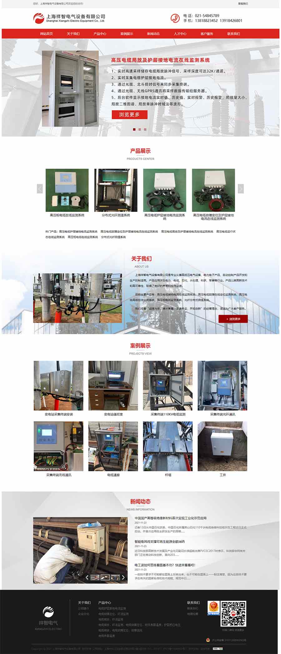 上海祥智電氣設備有限公司是專業從事高低壓電氣設備、電力電子產品、自動控制產品開發和生產的制造商。產品應用涉及電力、電纜、石化、水處理、科研、軍事等行業。產品以其高新技術和高可靠性,取得了良好的聲譽和應用業績。目前主要產品有:高壓電纜接地電流在線監測系統、高壓電纜故障在線定位監測系統、高壓電纜局放在線監測系統、高壓柜電纜監測系統、光纖分布式測溫系統。