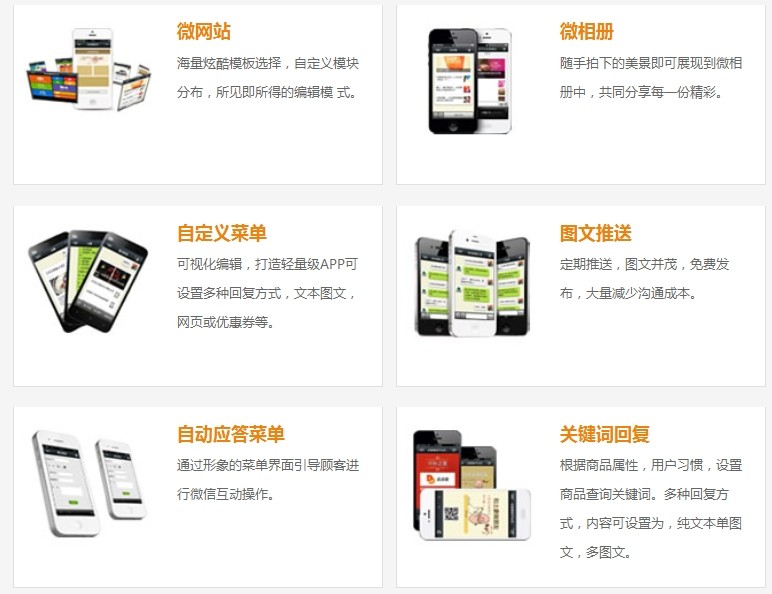 市場上智能手機比比皆是,針對手機微信的廣泛應用,公司新開發(fā)了微網站手機網站,可以鏈接微信服務號和微信訂閱號,適合多種行業(yè),新穎微網站樣式達到了120多款,預覽或試用請查看http://wap.m.dlhfc.com