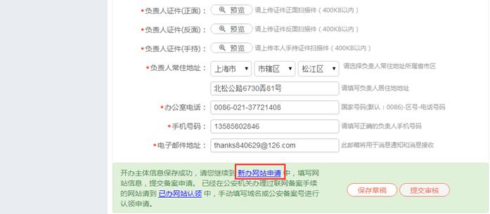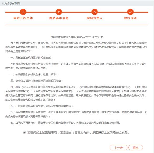 都填好后提交,等待審核就好了,審核通過后有一個網安備案號碼。