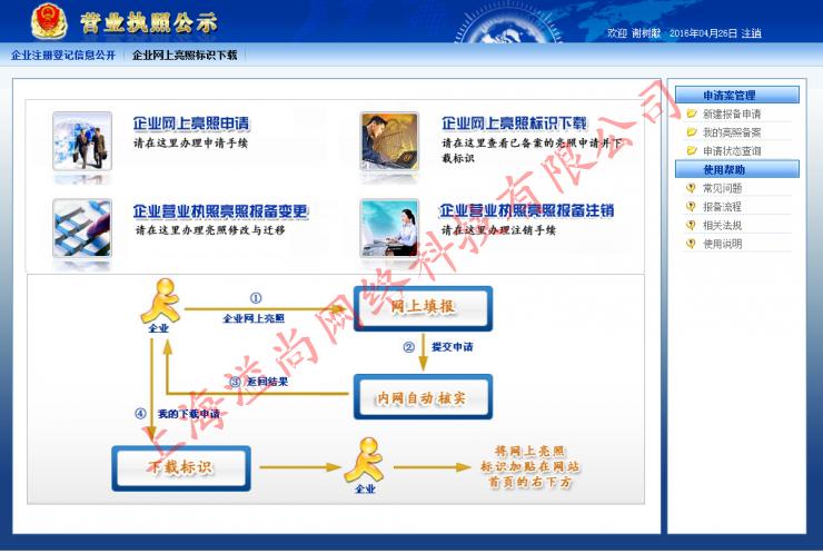 第五步:選擇“企業(yè)網(wǎng)上亮照申請(qǐng)”