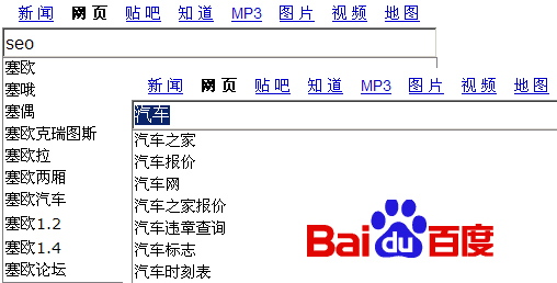 為什么上面我分別搜索了SEO與汽車做對比呢?本來左邊應(yīng)該出現(xiàn)與SEO相關(guān)的關(guān)鍵詞列表才對,但是百度似乎有識別拼音及英文縮寫的功能,以我現(xiàn)在的理解,我真不知道為什么搜索SEO會出現(xiàn)與“塞歐”相關(guān)的關(guān)鍵詞,我會找相關(guān)資料,弄明白后再公布給大家正確的答案。謝謝!