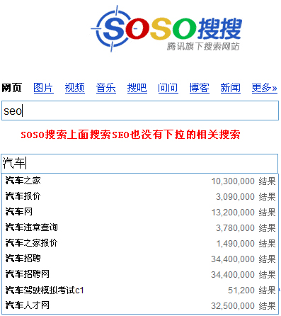 3、我們來看看SOSO的下拉框及底部的相關(guān)搜索。